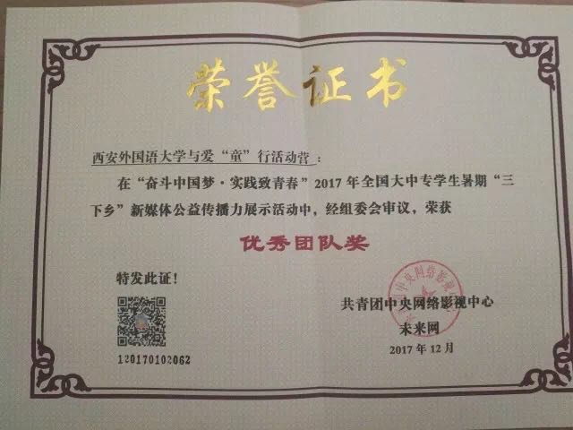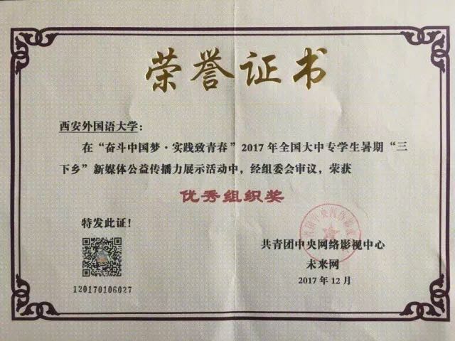 近日,我校在共青团中央网络影视中心、未来网组织的“奋斗中国梦·实践致青春”2017年全国大中专学生暑期“三下乡”新媒体公益传播力展示活动中荣获多个奖项,学校荣获“优秀组织奖”,与爱“童”行活动营荣获“优秀团队奖”及“优秀报道奖”。